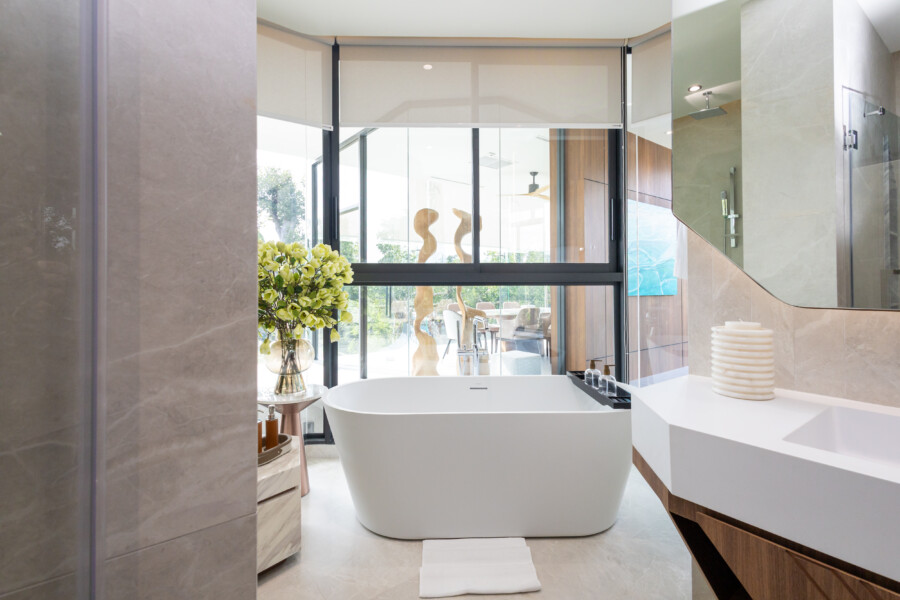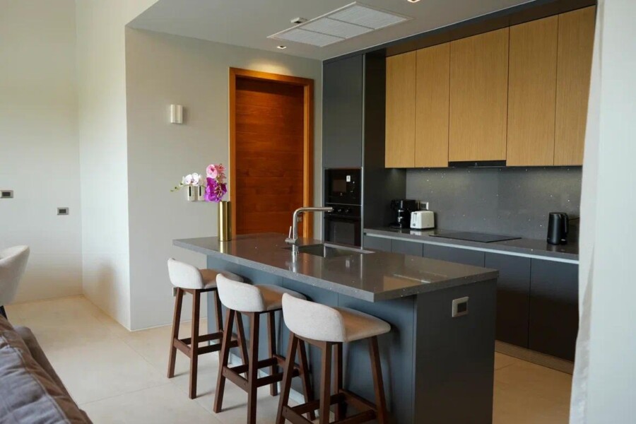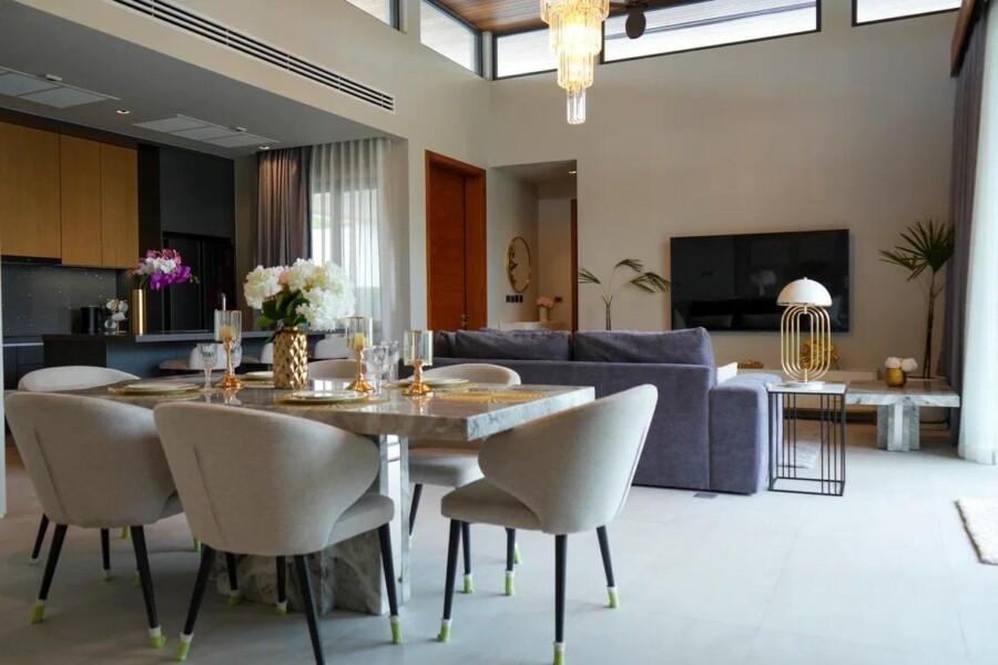 The villa features a stylish master bedroom, a bright open plan living and dining area and a modern kitchen with breakfast bar. Most of the villa including the master bedroom, first guest bedroom and living room open directly onto the terrace, large pool and garden. These stylishly decorated villas are ideal for permanent family living or as vacation rental homes. Botanica Modern Loft II is located 10 minutes by car from Boat Avenue Shopping Center, Porto de Phuket, Laguna Complex and major stores and restaurants.